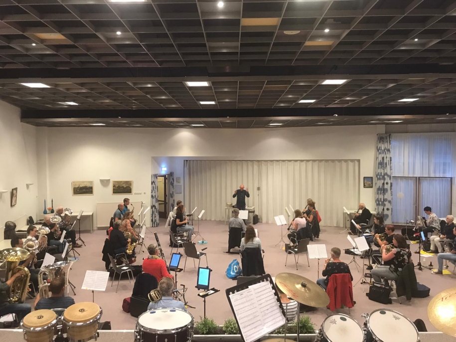 Voor het eerst sinds maart dit jaar heeft het harmonieorkest weer compleet gerepeteerd.